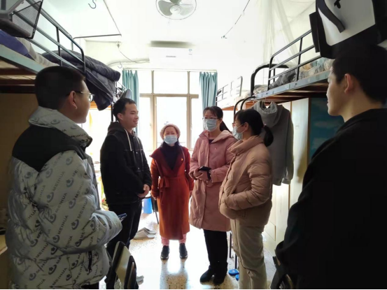 检测过后,各班班主任和“小分队”党员们走访建功书院和文澜书院,联系学生群体深入开展关怀慰问,疏导学生心理压力。面对疫情,任何人都有恐惧心理,但在防控一线,党员干部发挥了专业作用,让党员责任和担当在防控疫情的第一线熠熠生辉。