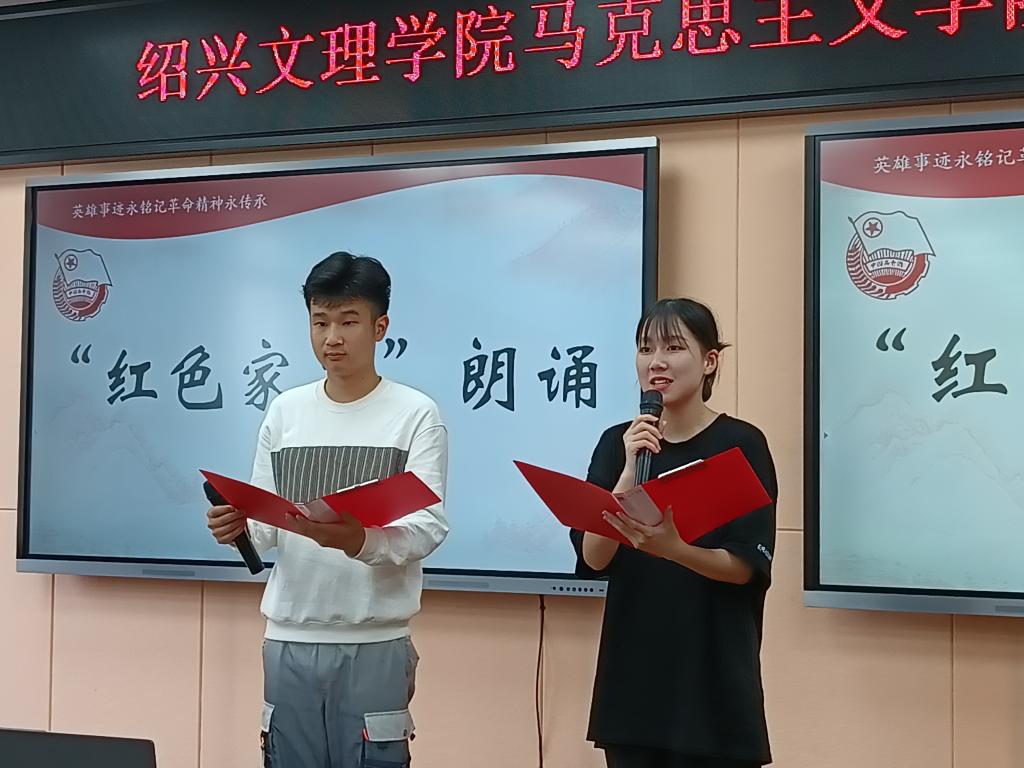 青年团员赵煊、王晓霞朗读俞秀松的“色家书”。继承先烈遗志,传承红色基因,在这封浸透硝烟和热血的家书中,再现了共产党员和革命战士崇高的理想信念、坚强的党性。少年强则国强,少年进步则国进步,少先队员们感悟信仰力量坚定理想信念,勇担时代重任。