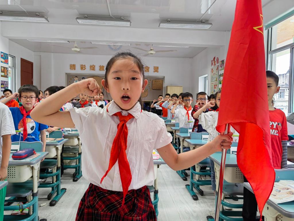 “我热爱中国共产党……准备着,为共产主义事业贡献力量!”一声声清脆嘹亮的入队誓言激荡在塔山中心小学二(一)班教室里,“我们是共产主义接班人”,稚嫩而坚定的少先队队歌焕发着少年的理想,激昂的旋律激励着少先队员向前进。