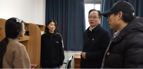 会后,校党委副书记张宏率招生与就业处负责人检查学院开学工作,看望老师和学生并交流。
