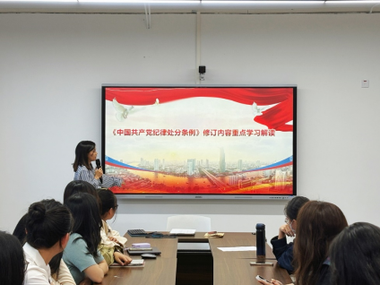 专题学习会上,党支部书记肖海岳对新修订的《条例》进行了重点导学。她从现实生活当中举例,要求党员同志强化自我约束,规范言行举止,切实将《条例》的各项规定贯彻落实到学习生活当中,坚持“严”的主基调不动摇,绷紧纪律规矩这根弦,把党的纪律印刻在心上,落实在行动中,永葆共产党人政治本色。