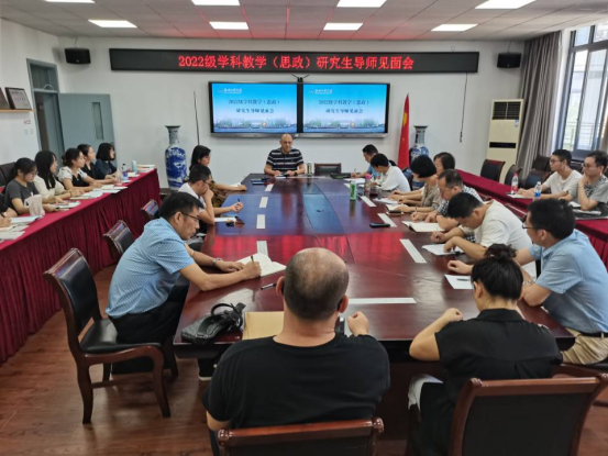 2022年9月7日下午,2022级学科教学(思政)研究生导师见面会在12号楼402会议室举行,院长章越松主持了本次会议,2022级学科教学(思政)13位研究生和所有导师参加了本次会议。