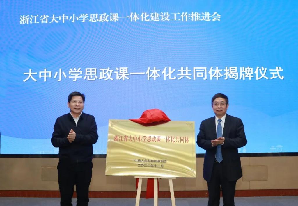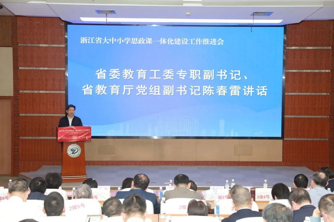 陈春雷指出,推进大中小学思政课一体化建设对于落实立德树人根本任务,教育引导广大学生坚定“四个自信”、努力成为堪当民族复兴重任的时代新人,具有不可替代的作用,全省各大中小学要切实把大中小学思政课一体化建设摆在重要位置,以成立省大中小学思政课一体化建设联盟为契机,加快推进思政课一体化建设,扎实推动新时代思政工作高质量发展。他要求,要突出工作重点,结合不同学段学生心理特点和教育规律办好思政课,建好专职教师队伍,打造好新平台。要加强工作协同,强化机制建设、课题研究和总结交流,推动校际协作、教师协作、校地协作,统筹推进大中小学思政课一体化建设。要擦亮工作品牌,打造特色教材、特色课程和特色实践活动,形成具有浙江辨识度的大中小学思政课一体化建设品牌。