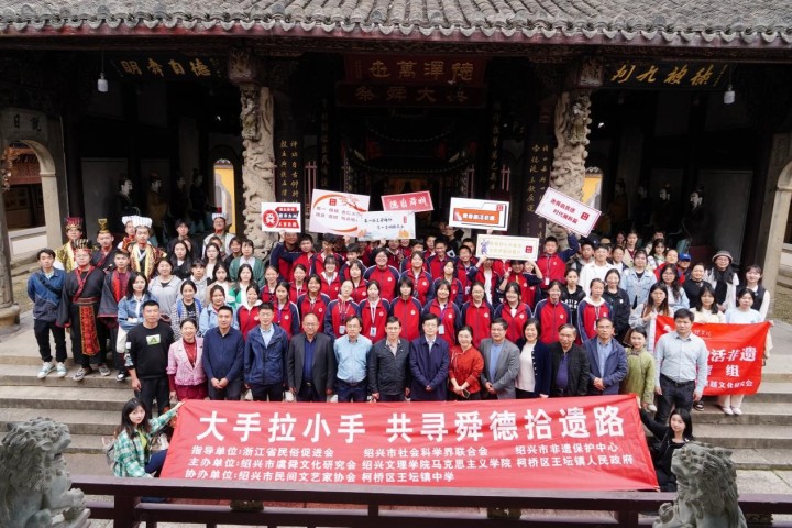 近日,在浙江省民俗促进会、绍兴市社会科学界联合会、绍兴市非遗保护中心联合指导,以及绍兴市社科联的全力赞助下,绍兴市虞舜文化研究会联合绍兴市民间文艺家协会、柯桥区王坛镇人民政府、BV伟德官方网站BV伟德官方网站、柯桥区王坛镇中学、BV伟德官方网站大学生吴越文化研究会协办“守正文化根脉,焕发舜德光彩——大手拉小手,共寻舜德拾遗路”研学游暨“青春力量守正创新绍兴民间虞舜文化”学术论坛,利用社会大课堂,助推传统文化实践育人实效。
