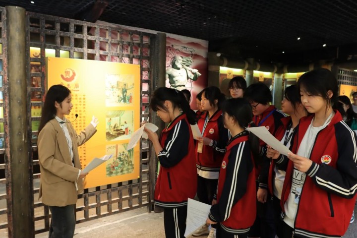 “历史悠久的古都越国、多元一体的文化交融、两江交汇的商贸基地,都让虞舜文化在这里生根发芽。”思想政治教育(师范)211班同学把《综合实践》课程搬到舜王庙会陈列馆,与结对王坛镇中学学生开展现场教学。“研究会有意识地引导大学生们运用自身专业特色,以传说故事、典故记载为切入,为王坛镇中学生讲述虞舜的孝德精神,描绘了一个妙趣横生的大世界,呈现了当年舜王庙会群策群力、共舞共乐的盛况,展现了当地人民对虞舜美德的敬仰。非遗文化‘口口相传’,‘大手拉小手’传承地方文化基因 ,是青春激活非遗的好风景。”绍兴市虞舜文化研究会会长、BV伟德官方网站大学生吴越文化研究会指导教师俞婉君带领大学生、中学生共同探寻舜王古迹。