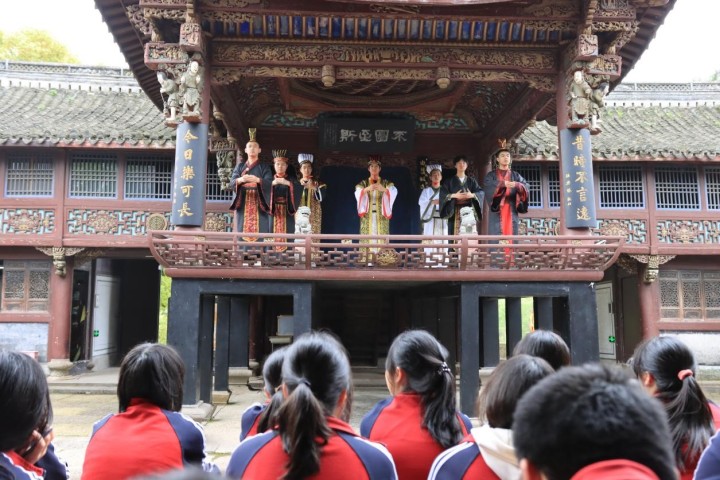 大中小学非遗研学活动,高校教师许大平、非遗传承人利用现场资源沉浸式讲解绍兴舜王庙会、绍兴国保舜王庙、牌匾的历史,细节化呈现祭舜大典程式、舜王巡会程式,解码非遗文化,打通青年学生、社会力量、中学生之间的沟通壁垒,搭建青年学子与非遗文化认同共识的“同心桥”,进一步扩大国家级非遗“舜王庙会”的影响力。