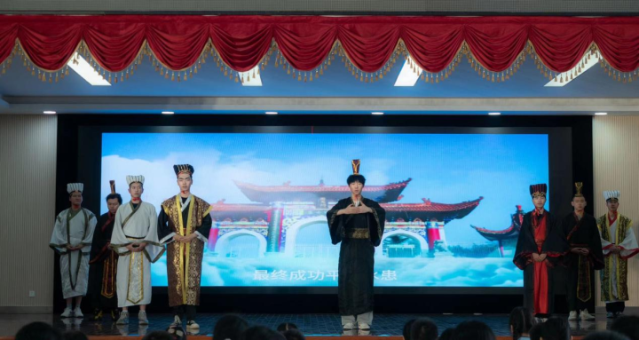 “什么样的人才可以继承舜王治理天下?”围绕这一话题,BV伟德官方网站大学生吴越文化研究会在指导老师、绍兴市虞舜文化研究会会长俞婉君的指导下,再创作舜王庙会社戏《八大臣会》,演绎尧舜时期禅让制传说。大学生扮演的八位大臣向舜王汇报工作再现舜王治国安邦、经国序民之景,歌颂勤政爱民的虞舜精神。同时通过台上台下、线上线下“穿越时空”、走进传说时代的方式,让在场的同学们以“群臣”的身份加入舜的接班人选拔讨论会,大中小学生共同在“你推荐人选的标准是什么”等问题上纷纷建言献策,体悟天下为公的虞舜精神。