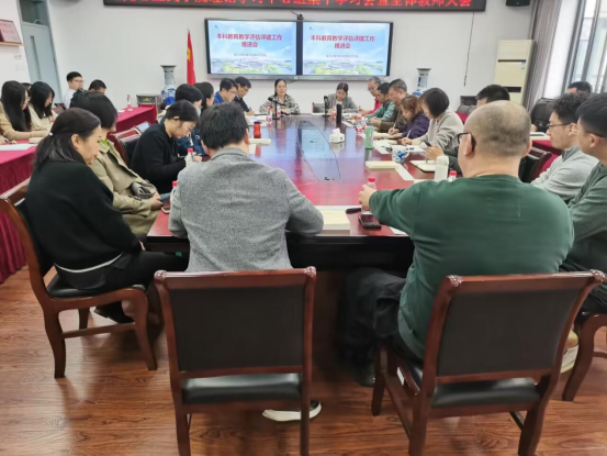 11月9日下午,学院在402会议室召开本科教育教学审核评估评建暨专业认证整改工作推进会,会议邀请学校质量评估中心主任祝立英、副主任宣学新现场指导,院长杜坤林、党委书记陈红、副院长方环非和副书记袁海平出席会议,学院全体教职工参加了推进会,会议由陈红主持。