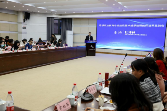 随后,与会导师就思想政治教育专业如何培养发表自身的见解,绍兴市教育教学研究院教研员骆新华指出,目前的师范生教育在教学理念、教学方式和教学实践上有待加强,要培养师范生的基本技能,加强理论修养,要由导师进行引领,开创新型教学方式,提升学生教学能力。此外,骆新华呼吁要多关照学生,学会放手,以更好适应社会,走上工作岗位。绍兴市秋瑾中学校长张瑜提出,要坚持多学科融合思政的大方向,更好建设思政专业优秀教师。她向学生提出一些要求:要有良好的专业知识,了解最新的课程标准、学科改革,能够让学生学校满意。既要教好书,也要带好学生,懂得心理学知识,善用信息化手段,更要保持科研的热情,与时俱进,更好适应时代的要求。诸暨市枫桥镇初级中学校长杨立波指出,学校的后勤设施能够保障实习生的学习成长,指导老师能为实习生提供高质量的指导。作为枫桥经验的发源地,丰富的实践基地为实习生提供多样的学习视角,向学生们提供了除了读研之外的更为实际的选择,呼吁学生积极参与实习实践,培养语言沟通与人际交往能力,成为学校真正需要的老师。鲁迅高级中学党委书记胡尧兴指出要加强学生跨学科教学的能力,不仅在思政,还要在历史、地理领域投入更多的热情,关注国家大政方针,培养综合学识素养。同时,不仅要做好思政教师,更要争取参与班级与学校管理,提高自身教学价值。导师们在理论知识学习、教学能力培养、职业定位、职业认同与规划、核心素养培训、为人处世等多个方面对思政教育师范生的教育与培养建言献策,深刻剖析了这一过程中的重点难点,切实解决学生不管是学习还是实习的难题,为思政学生的人才培养做出了巨大的贡献。