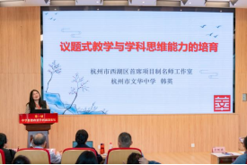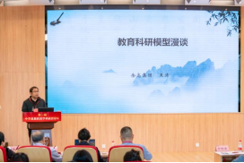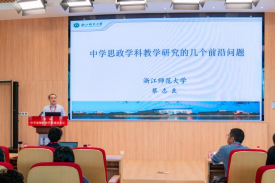 第二阶段报告人为绍兴市柯桥区教师发展中心戴建华,杭州市文华中学韩英,杭州市临平第二中学王涛和绍兴市镜湖中学高珺,分别报告了《从中学教学研究的热词看毕业论文选题》《议题式教学与学科思维能力的培育》《教育科研模型漫谈》《代表课:思政教师专业成长的富矿》,该阶段由BV伟德官方网站专业主任王明亮主持。